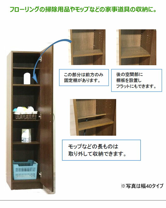 この板を外せば、158cmまでのモップなど長尺物が収納できます。