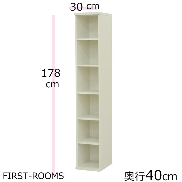 【本体外寸】 幅30.1×奥行き39.9×高さ177.9cm(約) 【本体内寸】 幅26.5×奥行き35.8×高さ170.3cm(約) ※固定棚・移動棚の奥行きは35.8cm(約) 【棚板枚数】移動棚3枚、固定棚2枚 【移動穴段数】54段(穴と穴の間隔、ピッチは3.2cm) 【色・主材】カントリー調 ブラウン・プリント紙化粧繊維板 【生産国】THAILAND ※お客様組み立て商品です。