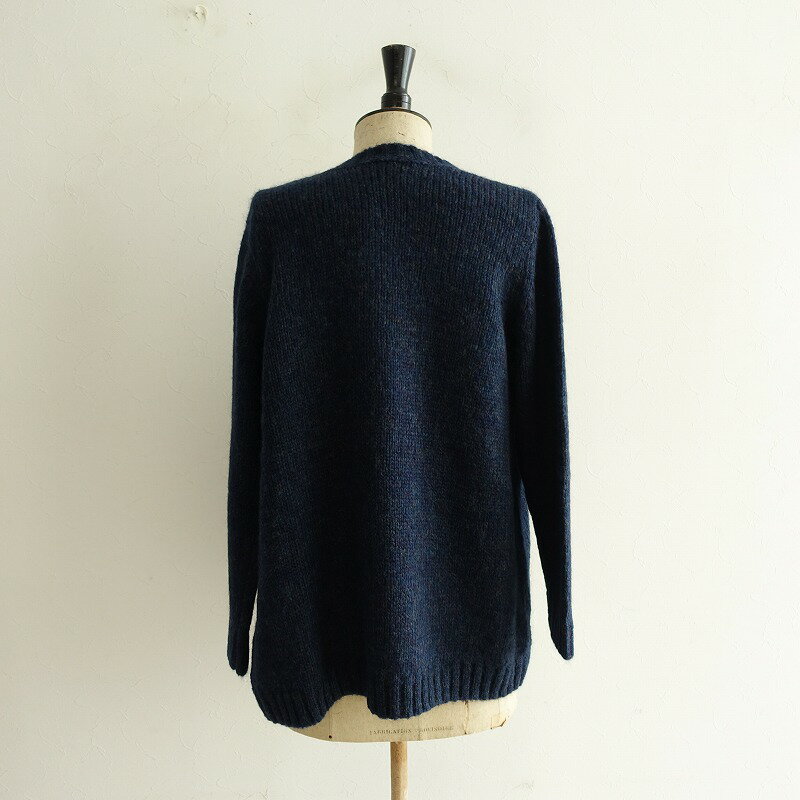 フロントオープンデザインで、バックネック・袖口・裾はリブ編みです。