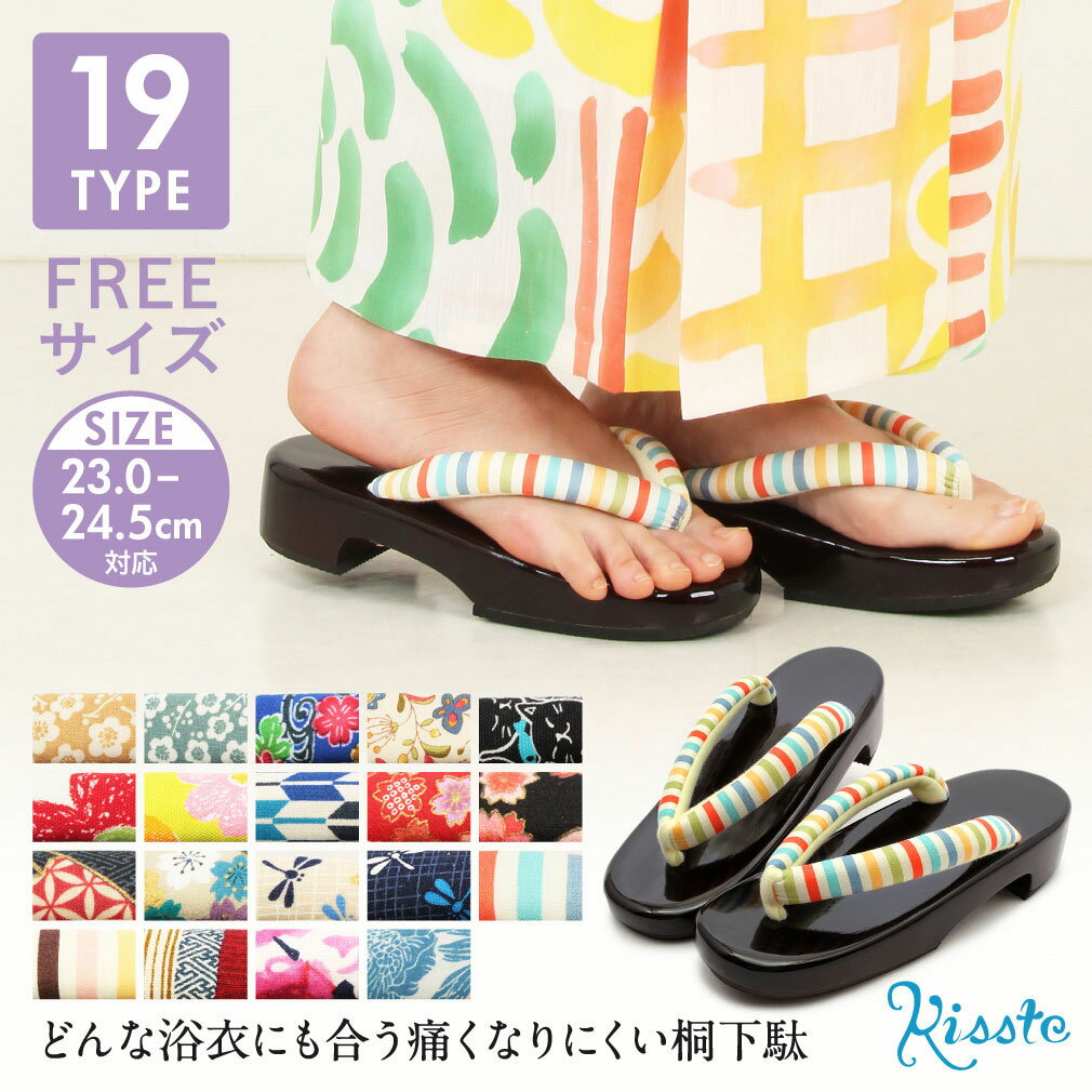 浴衣 下駄 レディース Lサイズ フリーサイズ <黒茶塗台/全19タイプ> Kissteオリジナルデザイン 【 げた ゆかた 浴衣下駄 女物 桐下駄 23.5 24.0 24.5 痛くない 痛くならない おしゃれ かわいい 女性 女 】