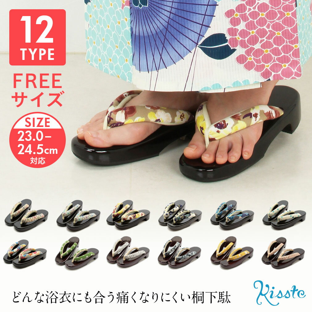 浴衣 下駄 レディース Lサイズ フリーサイズ <黒茶塗台/全12タイプ> Kissteオリジナルデザイン 【 げた ゆかた 浴衣下駄 女物 桐下駄 23.5 24.0 24.5 痛くない 痛くならない おしゃれ かわいい 女性 女 】