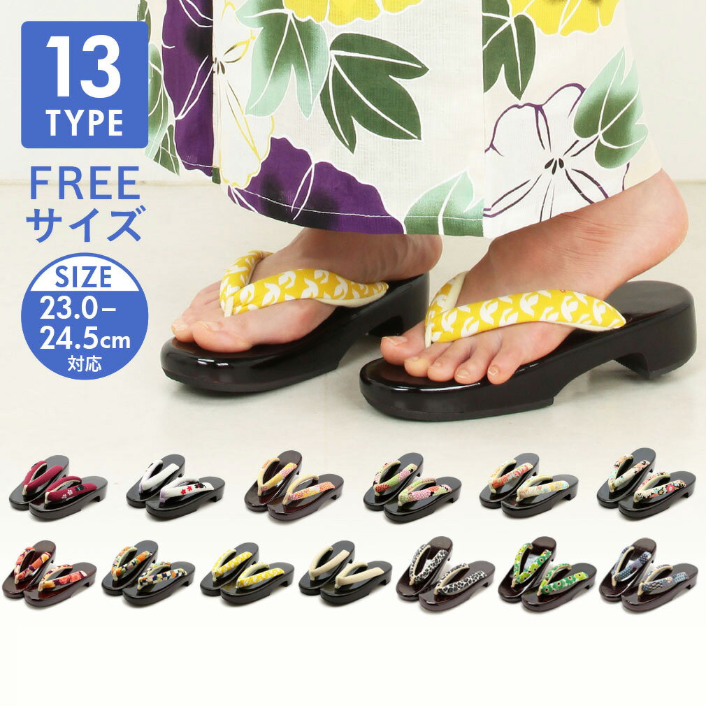 浴衣 下駄 レディース Lサイズ フリーサイズ <黒茶塗台/全13タイプ> Kissteオリジナルデザイン 【 げた ゆかた 浴衣下駄 女物 桐下駄 23.5 24.0 24.9 痛くない 痛くならない おしゃれ かわいい 女性 女 】