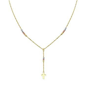【中古】【輸入品・未使用】Wellingsale 14?K 3?3色ゴールドポリッシュ2.5?MMビーズロザリオネックレス???18?%ダブルクォーテ%