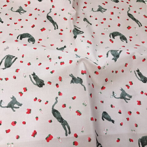 ■生地をご購入の前にお読みください シーチング生地 水彩風 黒猫と小さな苺 黒猫 いちご 水彩画 猫柄 苺柄 手書き風 ドット風 おしゃれ 生地 手芸 ハンドメイド マスク マスク作り 緑 ラベンダー ピンク クリーム ネイビー 50cm販売 くすみカラー ダスティー 布 シーチング アンティーク 猫 クロネコ CATシーチング生地 水彩風 手書き風 黒猫と小さな苺 メール便配送は1.5メートルまで ナチュラルな風合い 綿100なので 綿カスが残ってることもあります かわいいポーズをした 黒ねこちゃんがいっぱいの シーチング生地♪