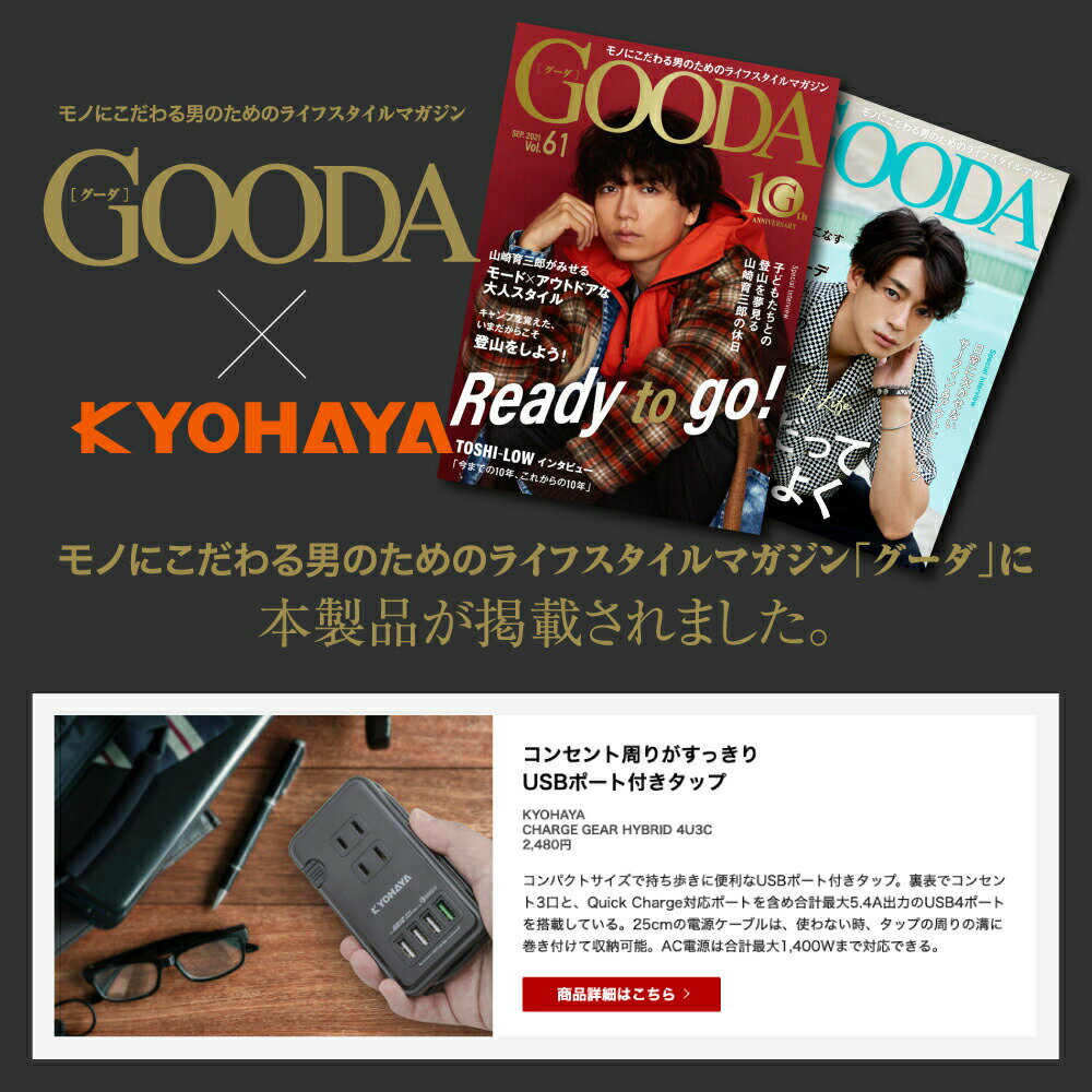 USB充電器 コンセント タップ 急速 充電器 保護回路 ACアダプタ 電源タップ スマートIC 搭載 + Quick Charge 3.0 搭載 USB出力合計5.4A コンセント最大1400W コード長25cm iPhone スマホ android KYOHAYA JKTP4U3C